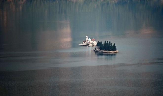 Đảo St. George và đảo Đức mẹ của Đá, nằm ở trung tâm của vịnh Kotor.