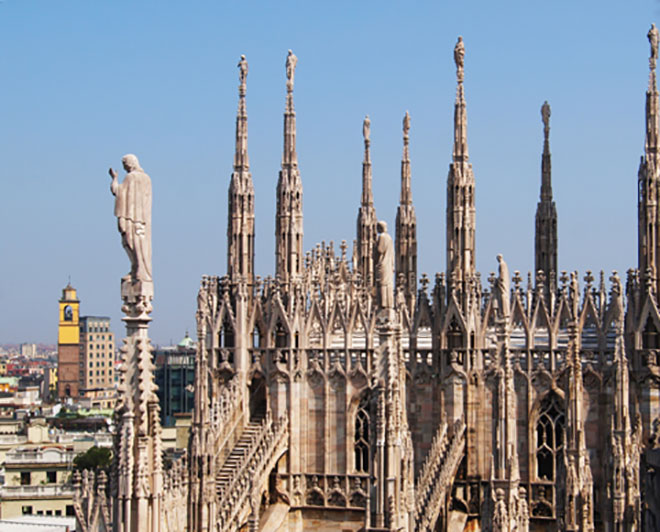 Nhà thờ Duomo Milan là một minh chứng đáng kinh ngạc của kiến trúc cuối thời Gothic và đây cũng là một trong những nhà thờ lớn nhất trên thế giới. Thánh đường Duomo Milan được xây dựng từ năm 1386 ở Lombardia ở miền bắc Italia.